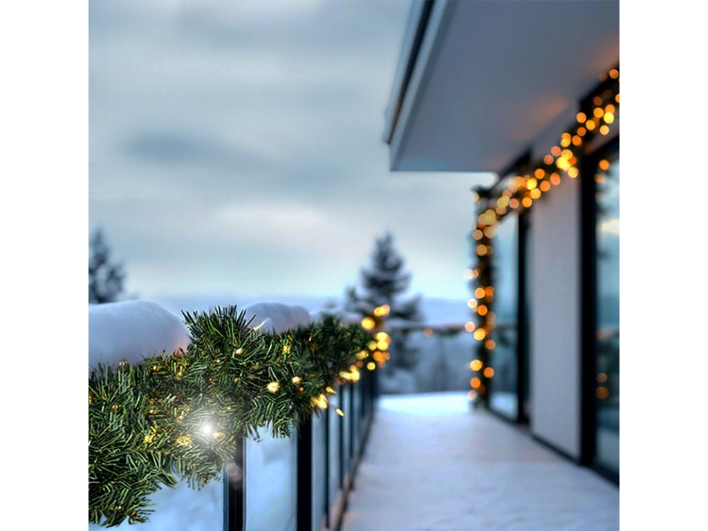 Vytvořte si okouzlující vánoční atmosféru s LED girlandou s umělým jehličím a teplým bílým osvětlením. Díky své velké délce a hustému zelenému jehličí je ideální pro výzdobu interiéru i venkovních prostor, jako jsou zábradlí, vstupní dveře nebo krbová římsa.