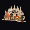 Dřevěná dekorace ve tvaru malebného vánočního městečka s dominantním kostelem je stylovým prvkem každé sváteční výzdoby. Tři teple bílé LED diody jemně podsvěcují jednotlivé prvky scény, čímž vytváří kouzelnou atmosféru. Rozměry 30 × 19 × 9 cm z něj dělají výraznou dekoraci pro okenní parapet, krbovou římsu či stůl.