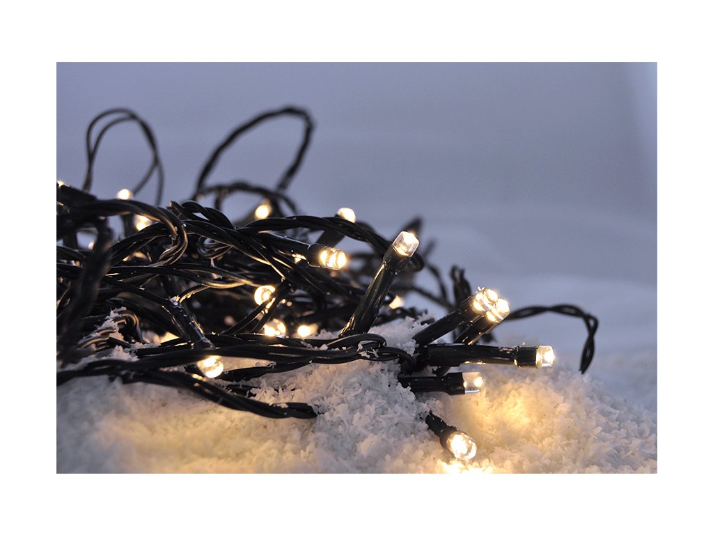 S celkovou délkou 30 metrů a 5metrovým přívodním kabelem máte dostatek prostoru pro kreativní instalaci v interiéru i venku. Řetěz má krytí IP44, což zajišťuje odolnost vůči vlhkosti a dešti. Zelený kabel elegantně zapadne do přirozeného okolí stromků či rostlin. Ideální pro ty, kteří hledají klasickou, ale zároveň efektivní světelnou výzdobu.