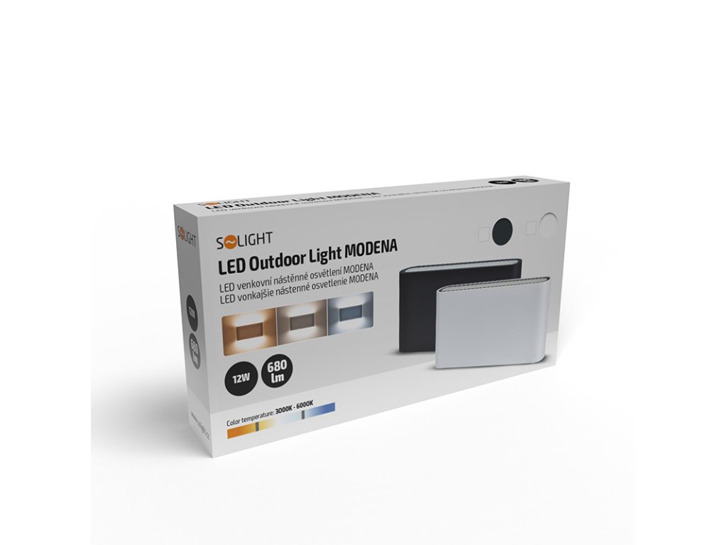 Solight LED venkovní nástěnné osvětlení Modena, 12W, 680lm, 120°, bílá