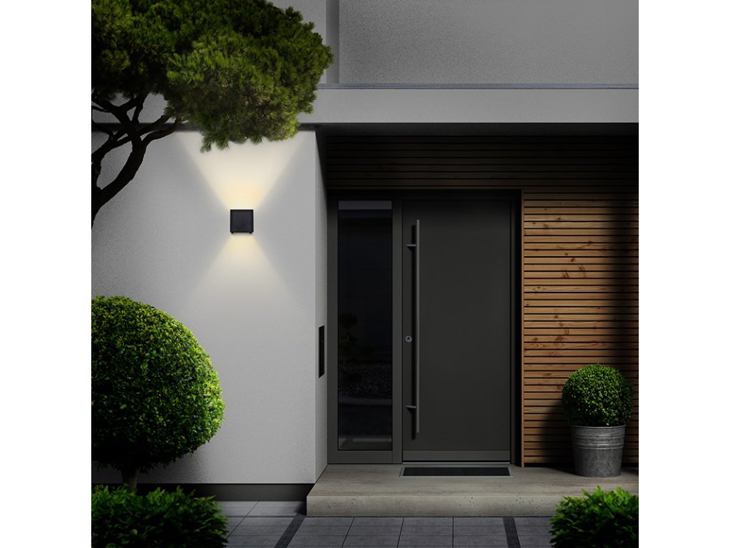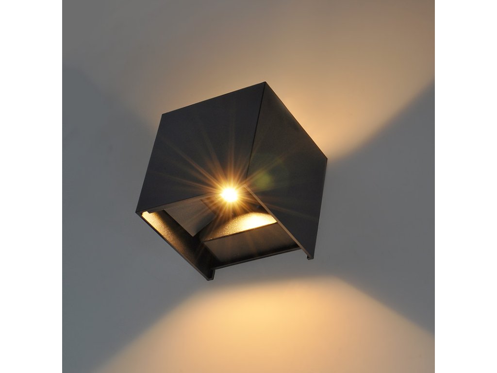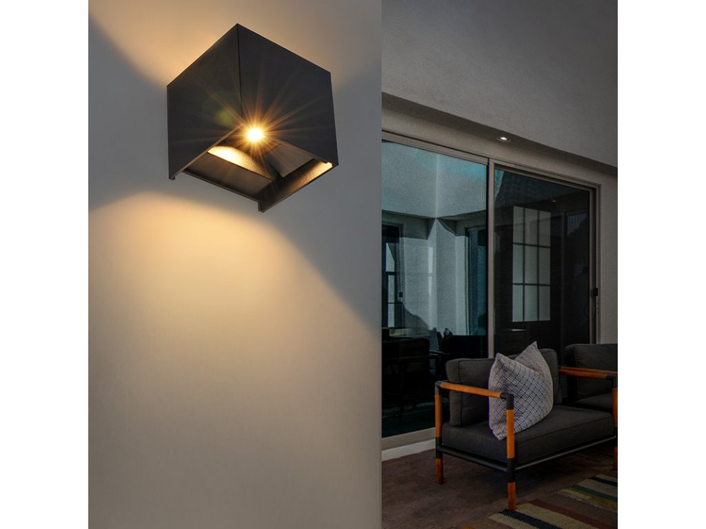 Svítidlo má příkon 6 W, hliníkové tělo a kompaktní rozměry 100 × 100 × 100 mm. Díky krytí IP54 je vhodné i do venkovních prostor, kde je chráněno proti stříkající vodě. Životnost LED je až 30 000 hodin a index podání barev Ra >80 zajišťuje věrné barvy. Černý design a přímé i nepřímé nasvícení dodají vaší stěně moderní výraz.