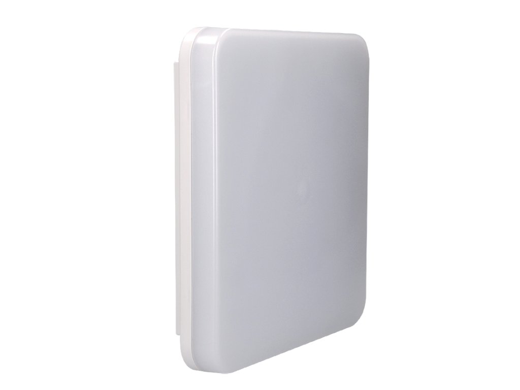 Čtvercové LED stropní a nástěnné svítidlo s příkonem 15 W a světelným tokem 1150 lm je vhodné pro vnitřní i venkovní použití díky krytí IP54. Nabízí neutrální bílé světlo o teplotě 4000K a široký úhel svícení 120°, který zajišťuje rovnoměrné osvětlení.