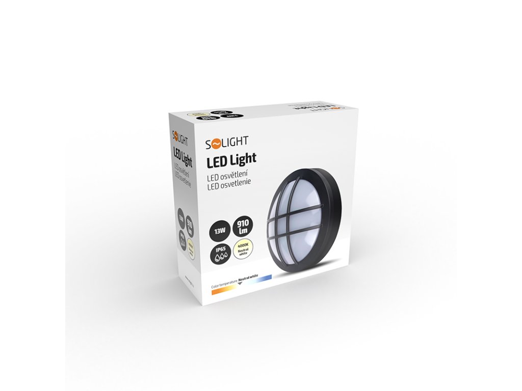 Solight LED venkovní osvětlení kulaté s mřížkou, 13W, 910lm, 4000K, IP65, 17cm, černá