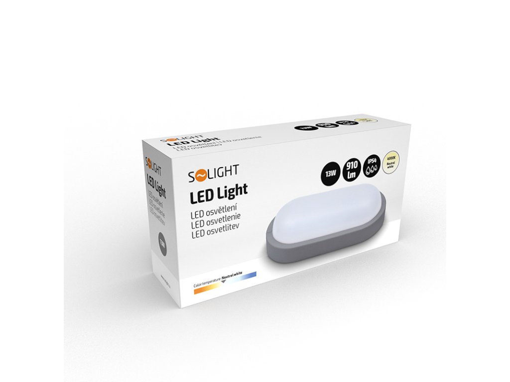 Solight LED venkovní osvětlení oválné, 13W, 910lm, 4000K, IP54, 21cm, šedá barva