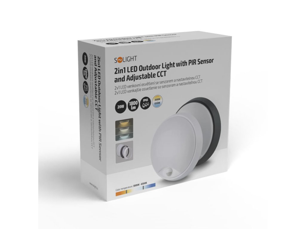Solight LED venkovní osvětlení se senzorem, 3 CCT, 15/18/20W, 1800lm, 22cm, 2v1 - bílý a černý kryt