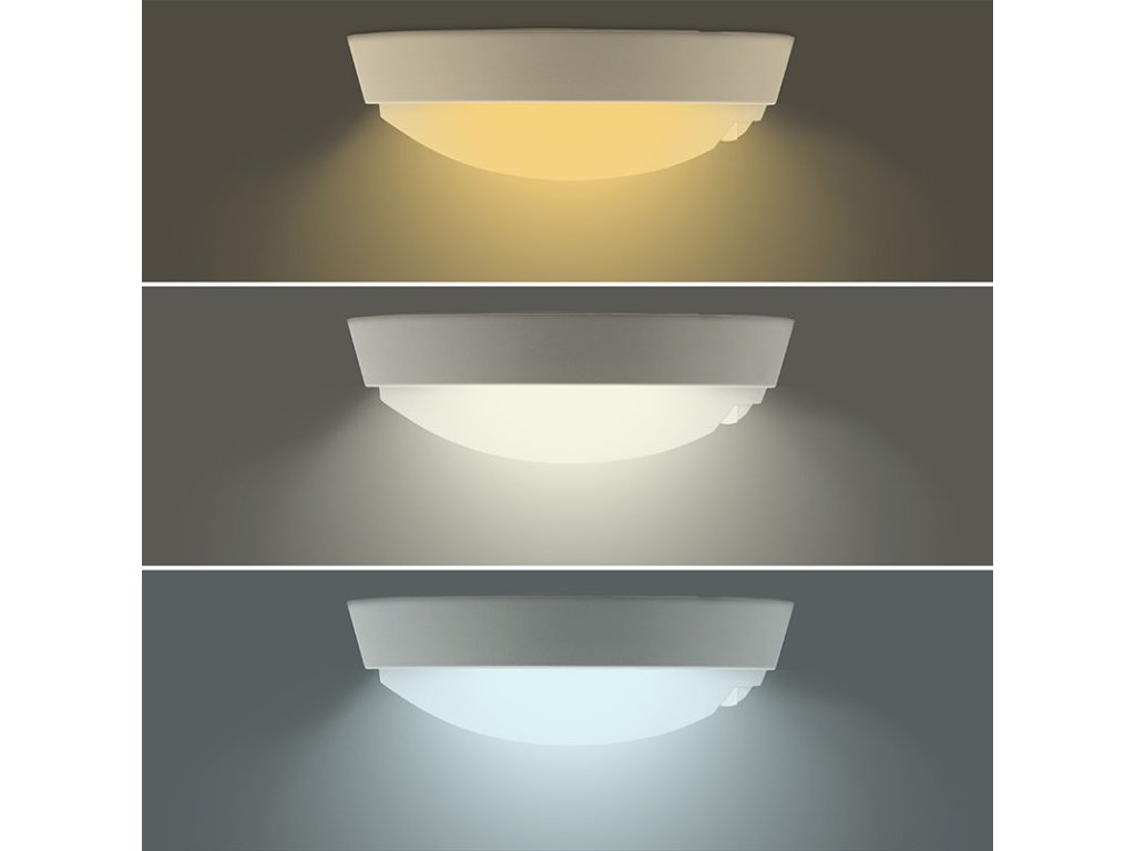 - světlo s pohybovým sensorem, speciálním LED zdrojem s přepínačem, který umožňuje nastavení teploty světla (CCT / chromatičnosti) 3000K, 4000K nebo 6500K. Současně lze volit příkon mezi 15/18/20W Součástí balení je černý i bílý kryt světla, který lze dle potřeby vyměnit.
