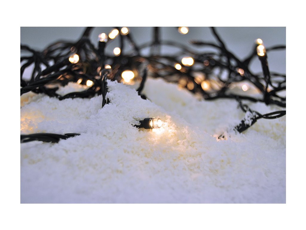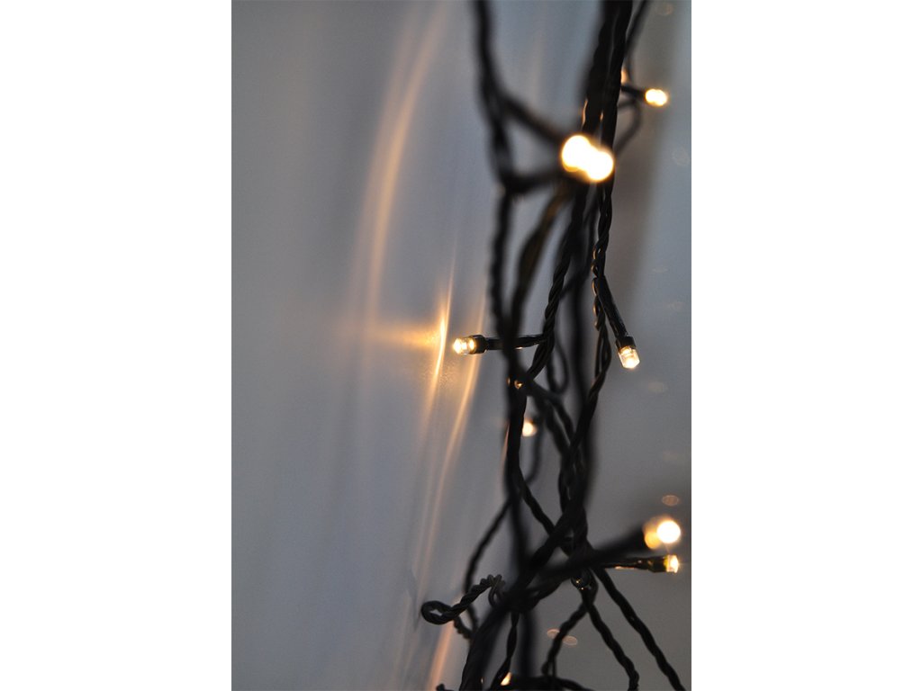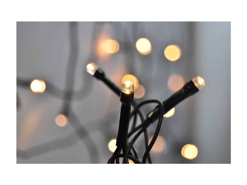 LED řetěz s 200 diodami v teplé bílé barvě a dvojnásobnou hustotou svícení přináší intenzivní, ale zároveň jemné osvětlení. Díky tomu skvěle vynikne v interiéru i exteriéru, kde navodí příjemnou a přátelskou atmosféru. Je vhodný pro slavnostní příležitosti, ale i jako stálá dekorace balkonů, teras nebo altánů.