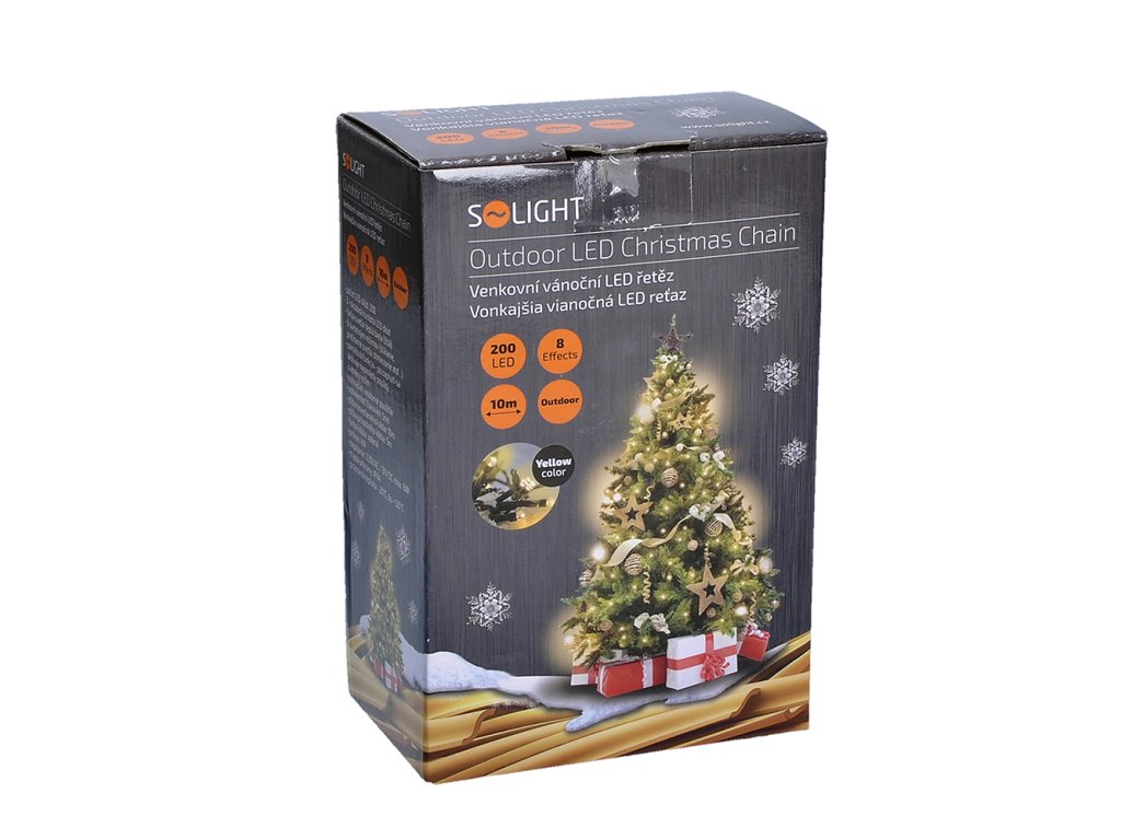 Solight LED venkovní vánoční řetěz, 200 LED, 10m, přívod 5m, 8 funkcí, IP44, teplá bílá