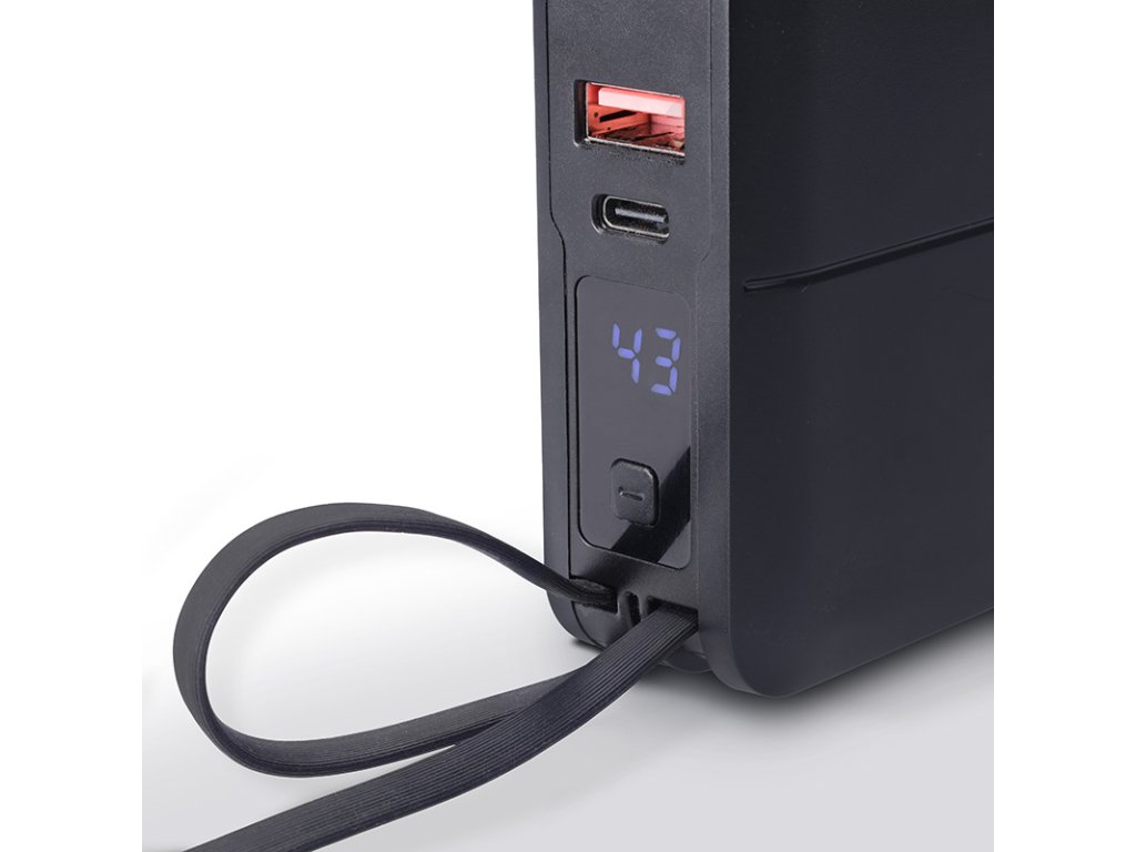 Výkonná power banka s kapacitou 10 000 mAh a bezdrátovým nabíjením (až 15W) umožňuje rychlé a pohodlné nabíjení vašich zařízení. Nabízí vstupy a výstupy USB-C, USB-A, Lightning kabel a USB-C kabel, takže je kompatibilní s širokou škálou zařízení. Podporuje rychlé nabíjení (USB-C: 5V/3A, 9V/2.22A, 12V/1.67A, USB-A: 5V/3A, 9V/2A, 12V/1.5A, 5V/4.5A).