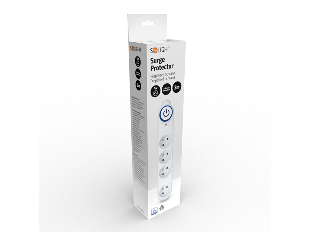 Solight přepěťová ochrana, 150J, 4 zásuvky, 3m, bílá