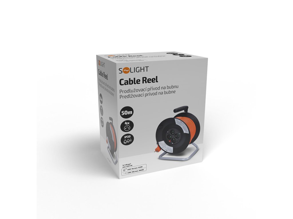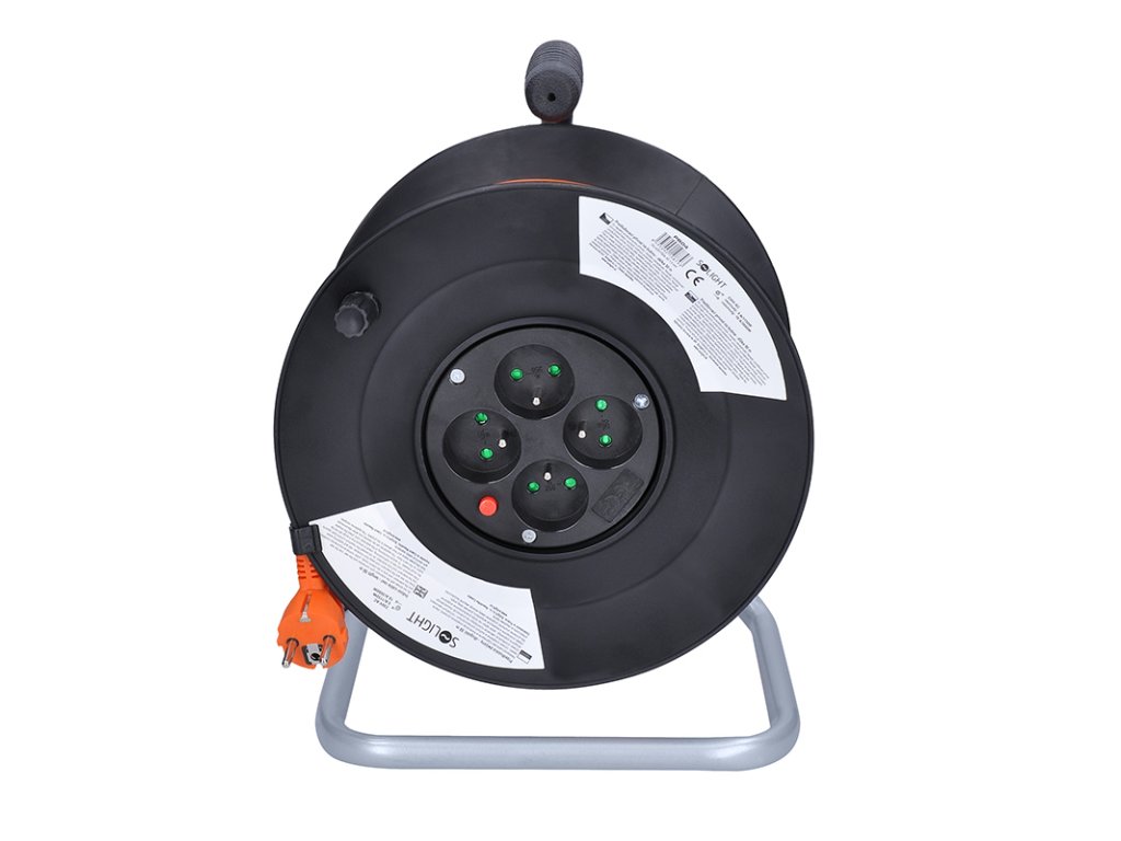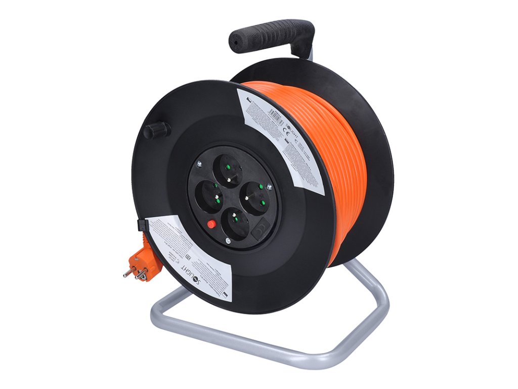 Solight prodlužovací přívod na bubnu, 4 zásuvky, 50m, oranžový kabel, 3x 1,5mm2