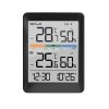 Digitální teploměr a vlhkoměr s měřením vnitřní teploty (-9,9°C až +50°C) a venkovní teploty (-40°C až +70°C). Měření vlhkosti v interiéru i exteriéru (20% až 95%). Paměť minimálních a maximálních hodnot pro teplotu a vlhkost, indikátor vývoje teploty a vlhkosti. Funkce hodin, budíku a časového formátu 12/24, zobrazení teploty ve °C/°F. Součástí balení je 1 bezdrátový senzor s dosahem až 60 m (bez překážek). Napájení: hlavní jednotka 2x AAA baterie, senzor 2x AAA baterie (není součástí balení). Barva: černá.