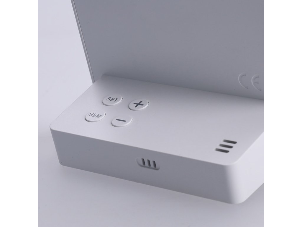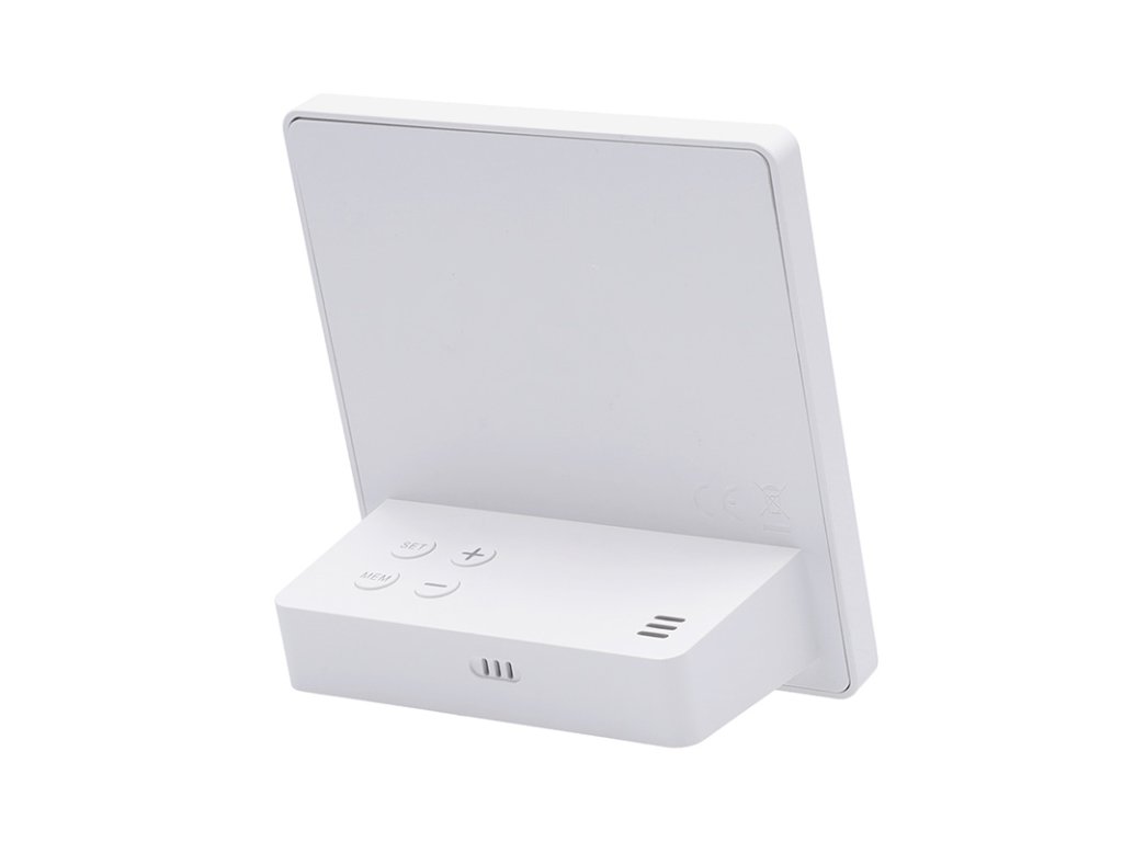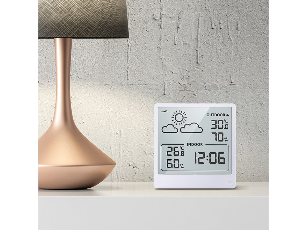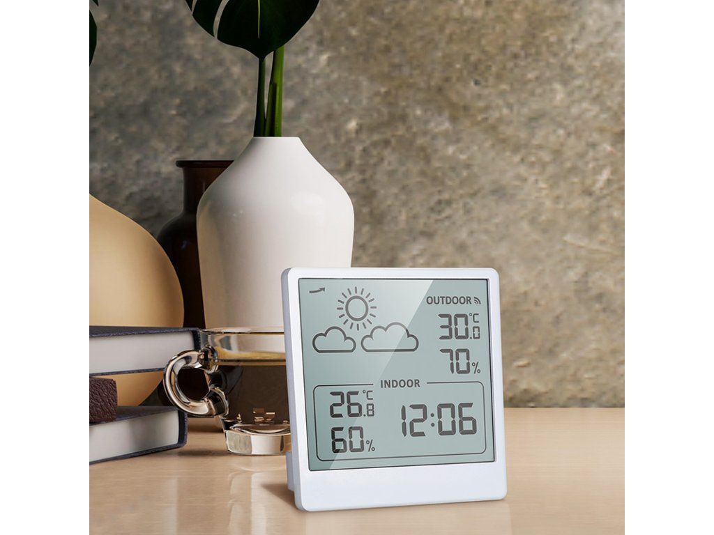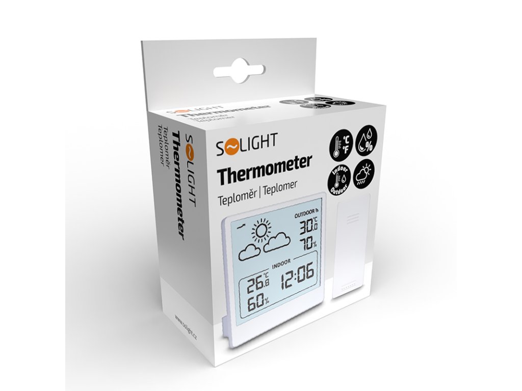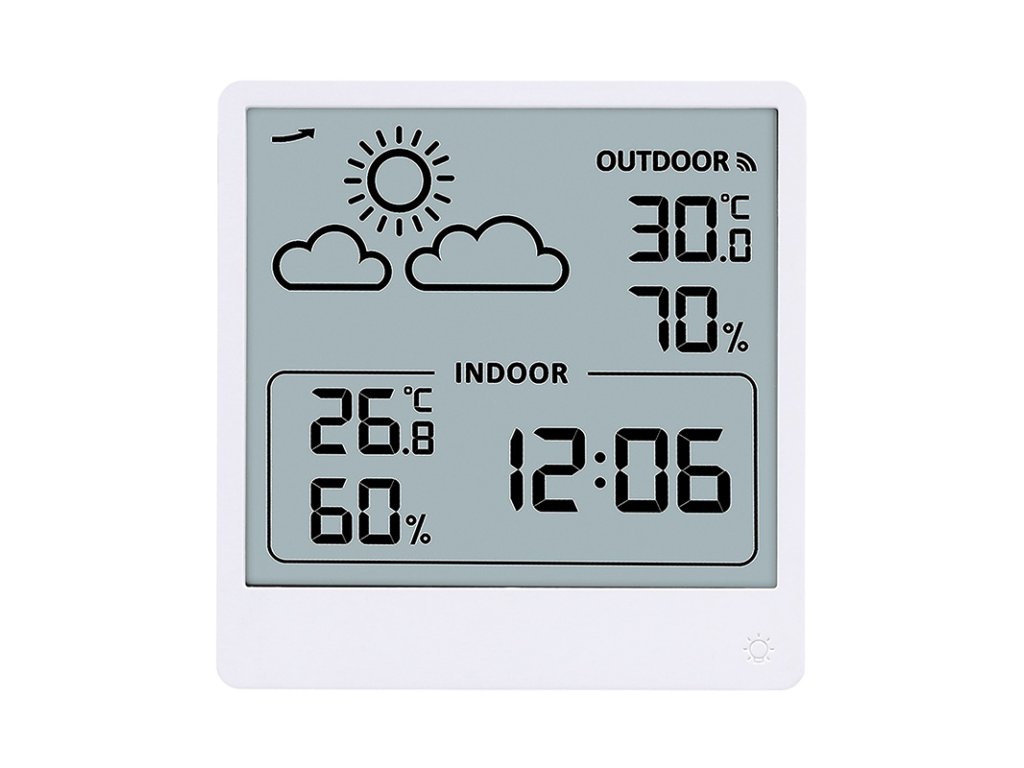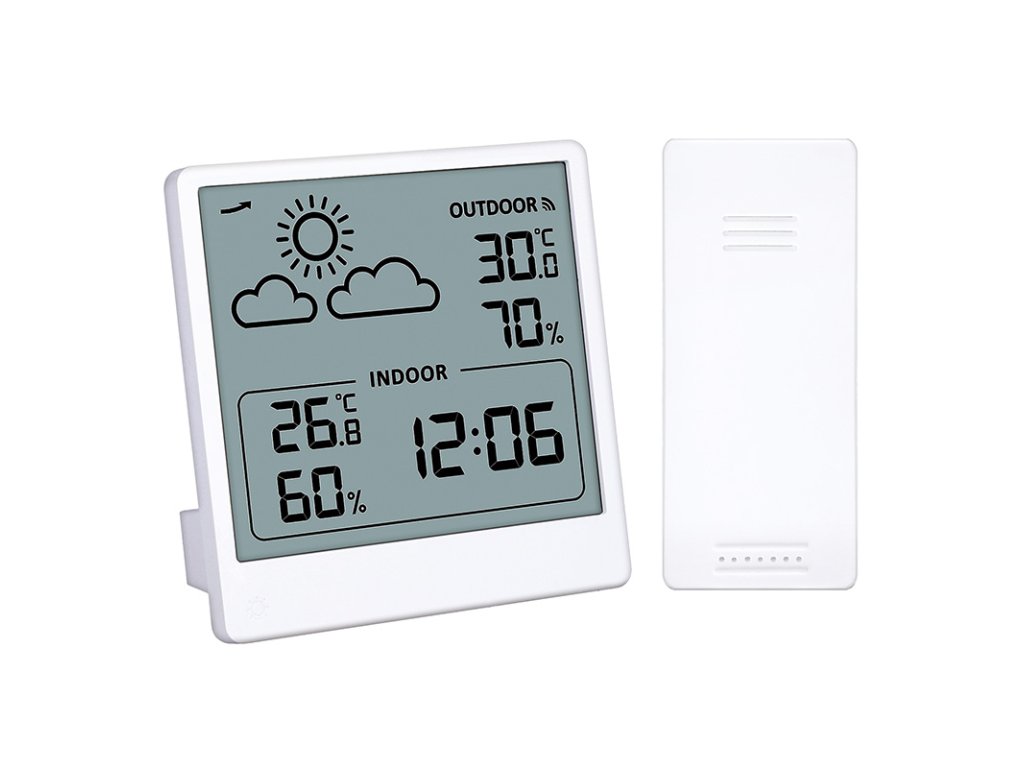 Měření vnitřní teploty od -9,9°C do +50°C a venkovní teploty od -40°C do +70°C. Měření vlhkosti (20% až 95%) pro vnitřní i venkovní prostředí. Ukládání maximálních a minimálních hodnot teploty a vlhkosti, zobrazení trendu změny tlaku a předpověď počasí. Možnost volby jednotek teploty °C/°F. Napájení: hlavní jednotka a senzor 2× AAA baterie (není součástí balení). Barva: bílá.