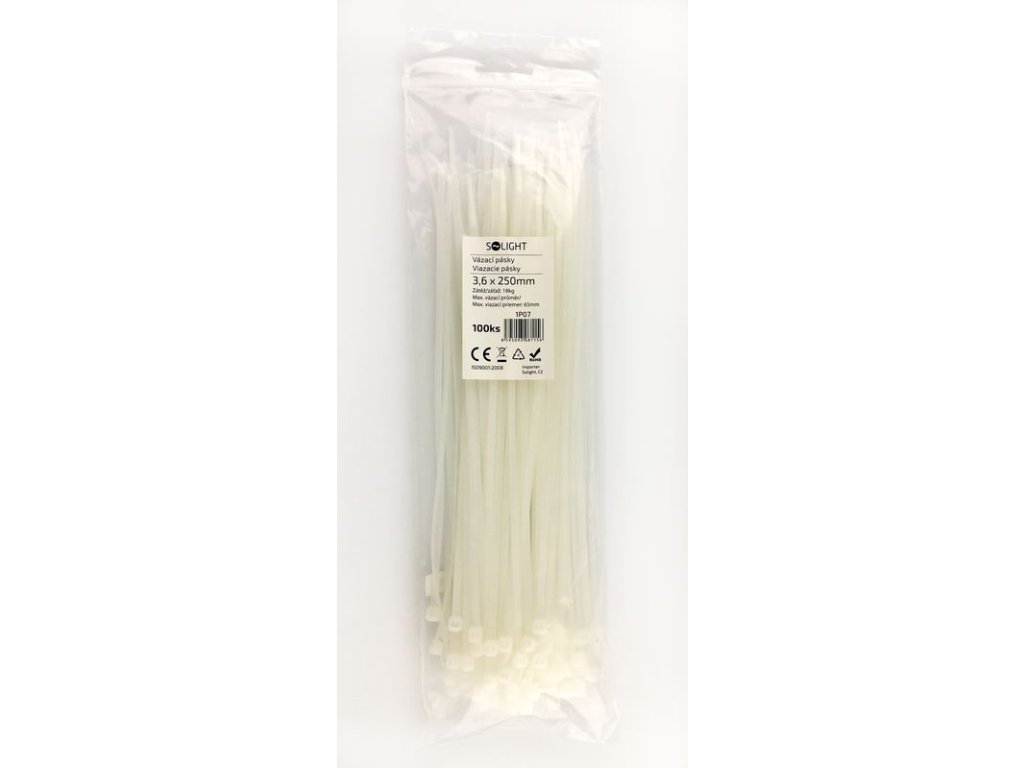 Solight vázací nylonové pásky, 3,6 x 250mm, natural, 100ks