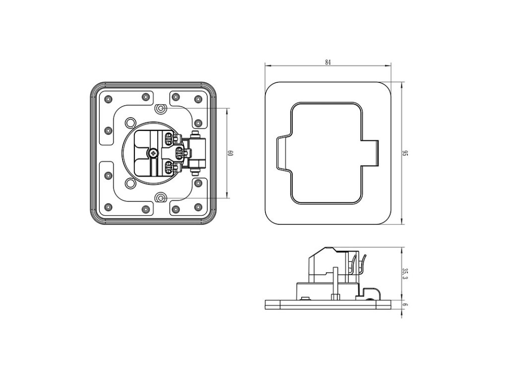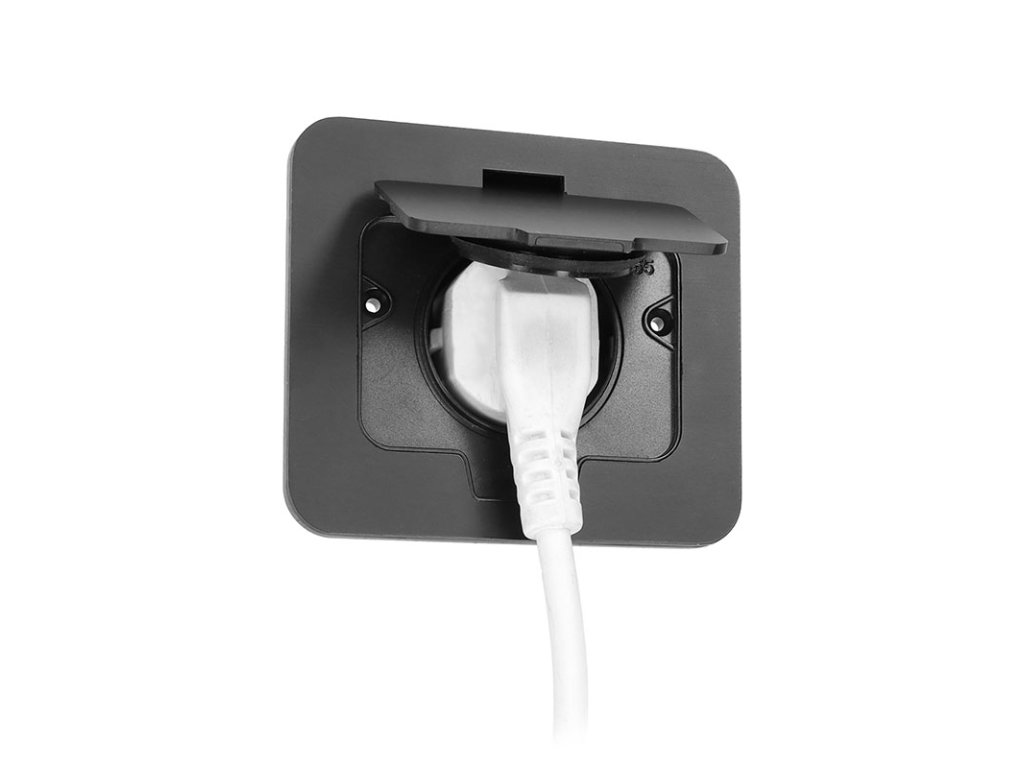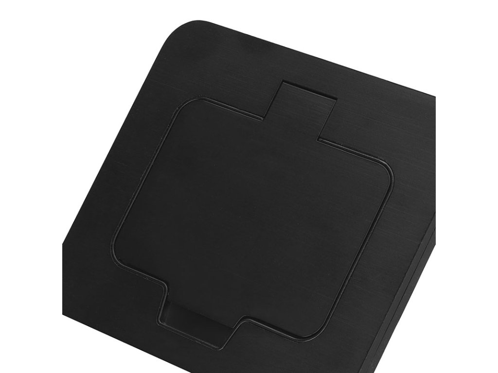 Vrchní kryt zásuvky je vyroben z odolné zinkové slitiny, která zajišťuje pevnost a zároveň ochranu proti korozi. Na povrchu nejsou viditelné žádné šrouby – montážní otvory zůstávají skryté pod víčkem. Díky tomu působí zásuvka elegantně a profesionálně a zároveň se snadno čistí.