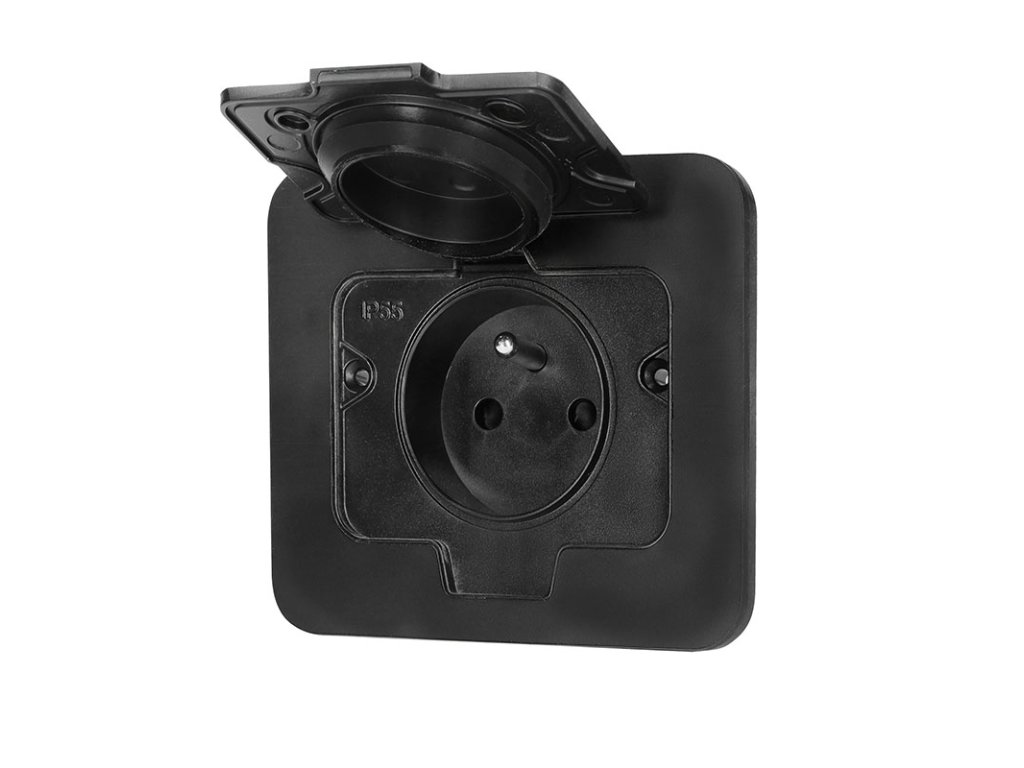Solight vestavná podlahová zásuvka, IP55, matná černá, obdélníkové víčko