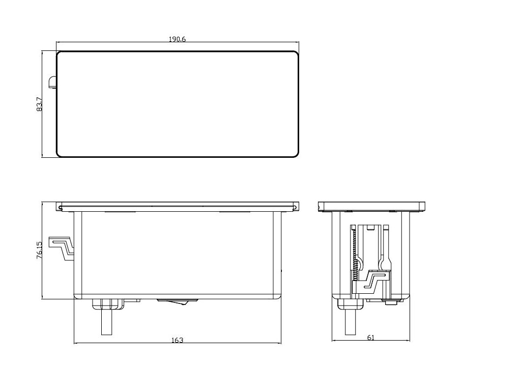 Vestavný blok zásuvek přivádí elektrickou energii i rychlé USB nabíjení přímo do pracovního stolu nebo kuchyňské linky. Dvě zásuvky 230 V s dětskými pojistkami jsou doplněny o USB-A a USB-C porty s technologií rychlého nabíjení až 20 W. Integrovaný posuvný kryt chrání vnitřek před prachem a nečistotami, napájecí kabel o délce 2 metry nabízí dostatek prostoru pro běžné umístění.