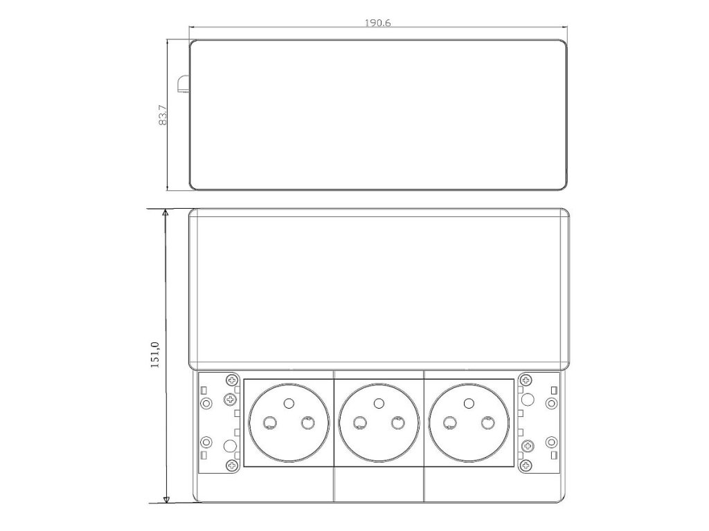 Vestavný blok zásuvek přivádí elektrickou energii přímo do pracovního stolu nebo kuchyňské linky. Tři zásuvky 230 V s dětskými pojistkami jsou schované pod decentním posuvným krytem, který chrání vnitřek před prachem a nečistotami. Napájecí kabel o délce 2m plně dostačuje pro běžné umístění v pracovních deskách a stolech.