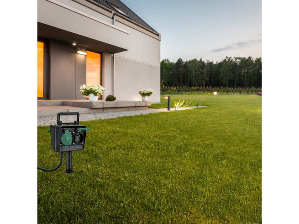 1,5 metru dlouhý gumový kabel typu s vodiči o průřezu 3×1,5 mm2 zajišťuje maximální příkon až 3680 W (16 A při 230 V~). Zvládne tak i energeticky náročnější zařízení. Černé provedení se zelenými krytkami zásuvek nenápadně zapadne do každé zahrady.