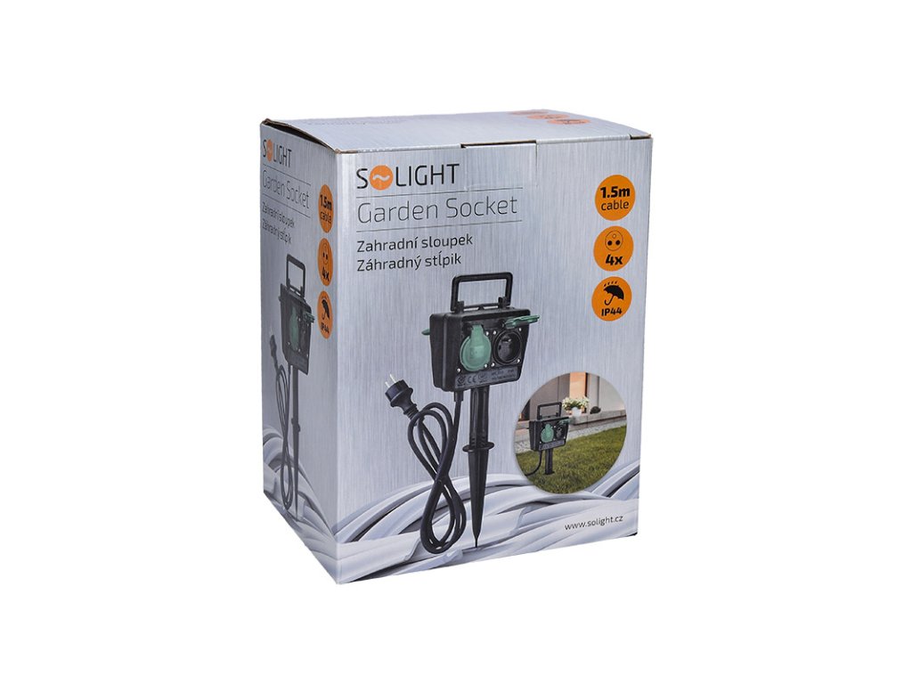 Sloupek je vybaven čtyřmi zásuvkami s krytkami, které chrání před vlhkostí, prachem i nečistotami. Díky stupni krytí IP44 odolá stříkající vodě a je vhodný pro venkovní prostředí. Hrot ve spodní části umožňuje snadné zapíchnutí do země a stabilní upevnění.