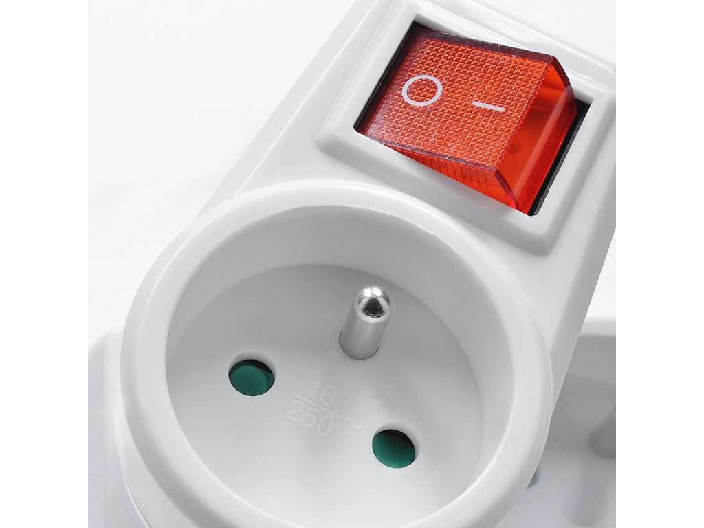 Průběžná zásuvka s vypínačem se hodí všude tam, kde je z bezpečnostních důvodů vhodné přerušit napájení spotřebiče při odchodu nebo delší přestávce v používání. Zvládne celkovou zátěž až 3680 W a umožní připojit jakýkoli spotřebič v kuchyni, obýváku nebo dílně. Zásuvka jsou navíc vybavena dětskými pojistkami, které zajistí bezpečný provoz i v domácnostech s dětmi. Díky kompaktnímu provedení nezabere zbytečně místo.
