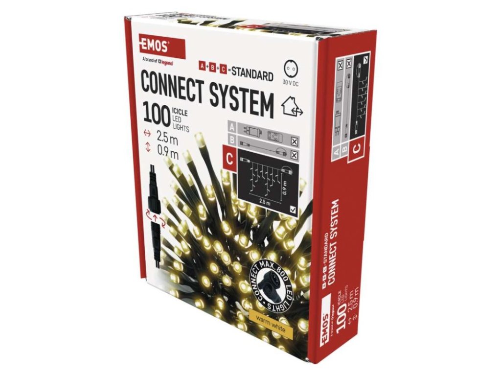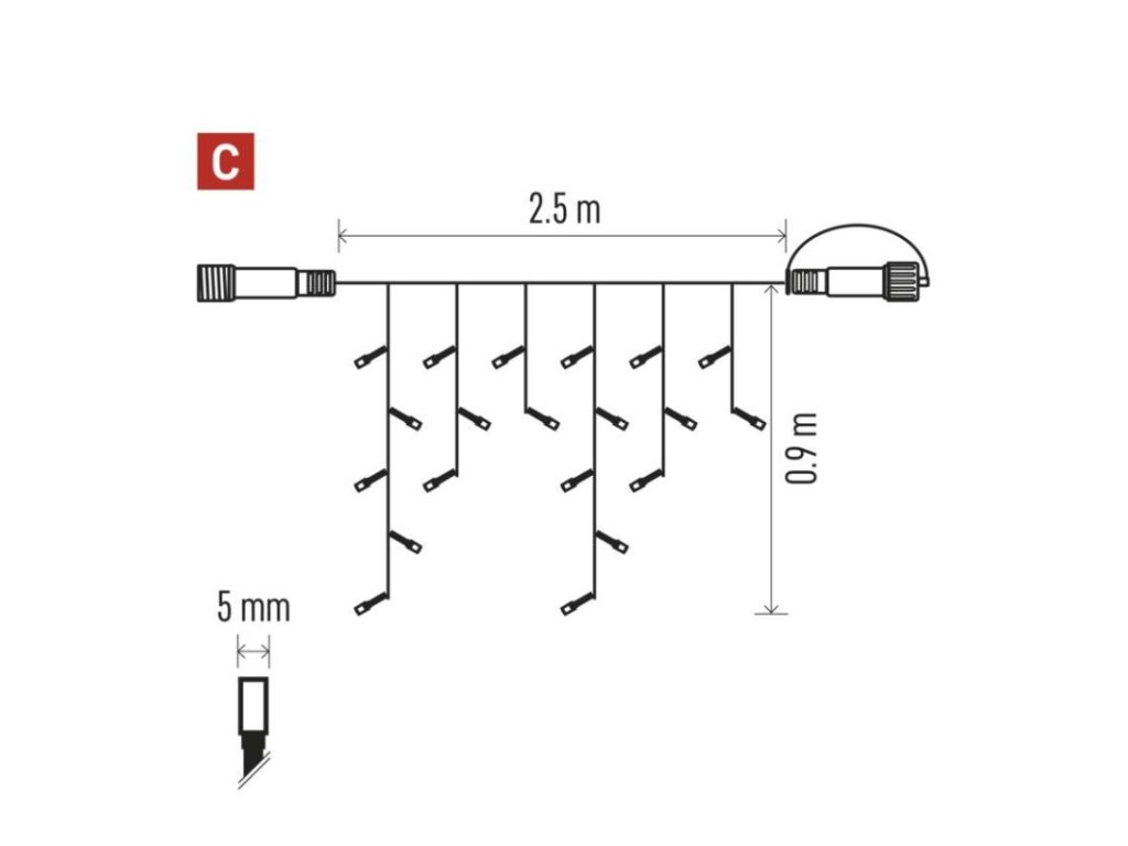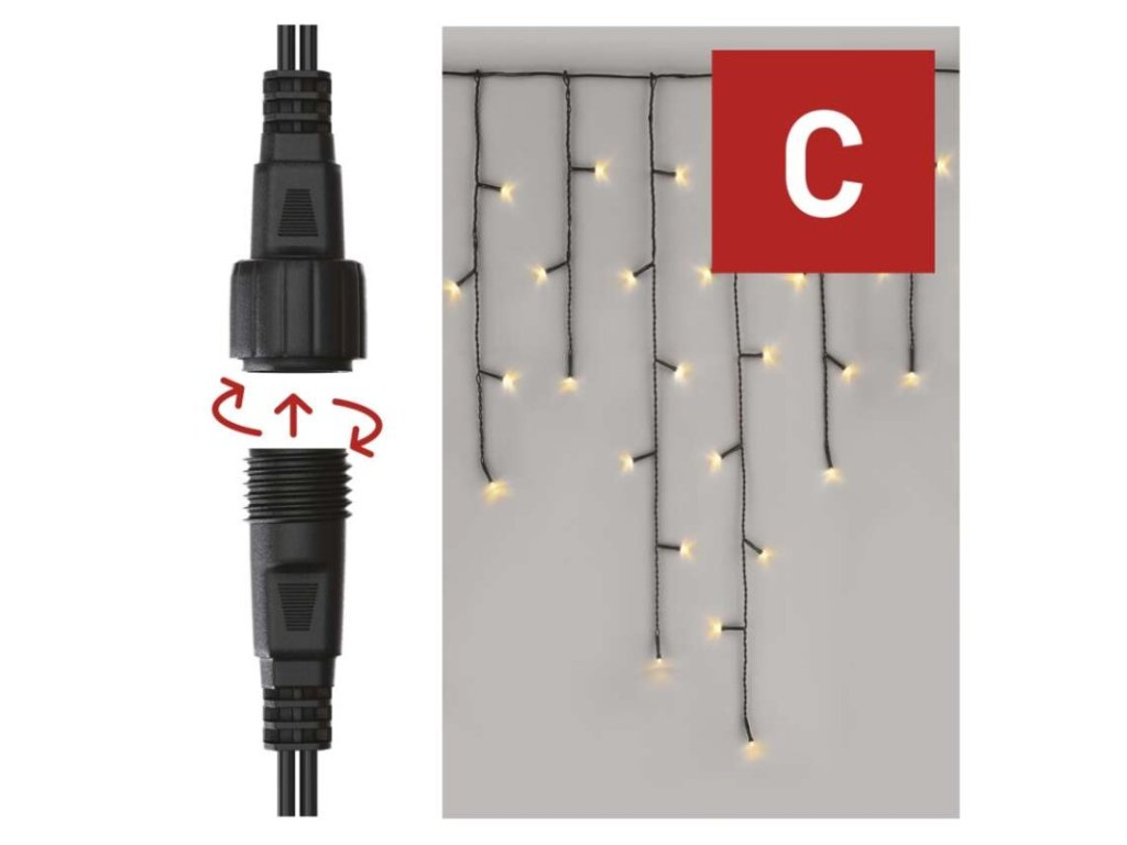 Standard LED spojovací vánoční řetěz – rampouchy, 2,5 m, venkovní, teplá bílá