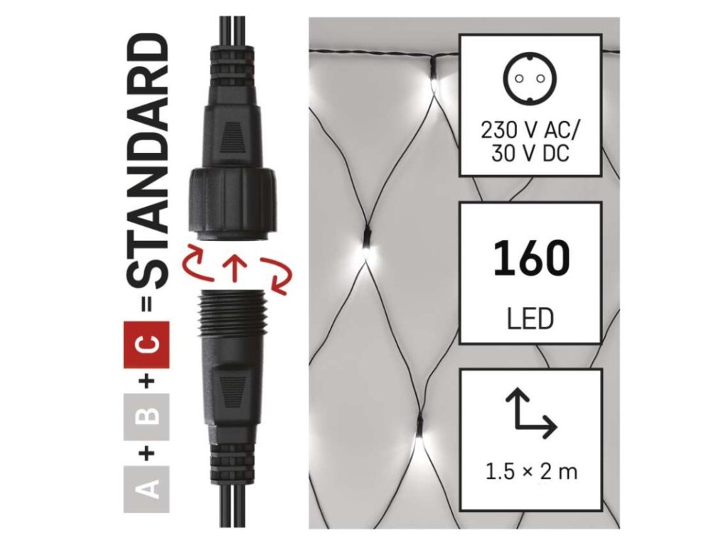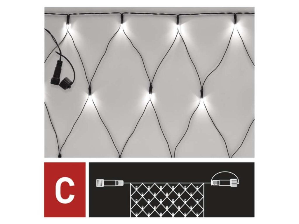 Standard LED spojovací vánoční řetěz – síť, 1,5x2 m, venkovní, studená bílá