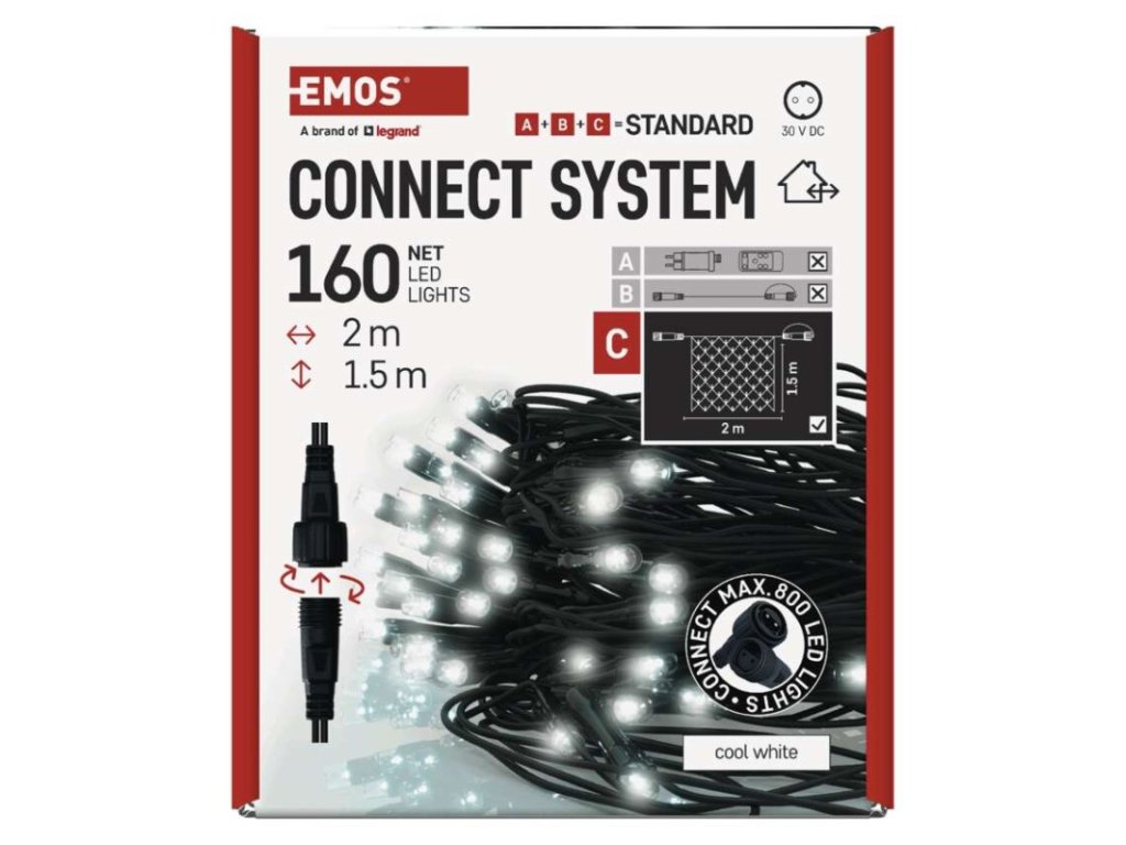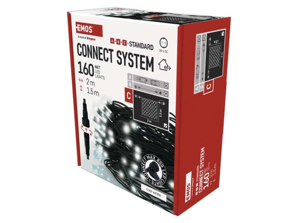 barva drátu: černá|barva světla: studená bílá|časovač: neuvádí se|dálkový ovladač: ne|délka přívodu: 10 cm|funkce: svítí|krytí: IP44|LED mezera: 10 cm|materiál: PVC|možnost propojení: ano|počet LED: 160|použití: venkovní i vnitřní|příkon: max. 4 W|prodejní obal: 1 ks, krabice|produkt: síť|pro výšku stromu: neuvádí se|rozměr: 2 × 1,5 m|tvar: klasický|typ napájení: síťový adaptér (není součástí balení)|velikost LED: 5 mm|vstupní napětí: 30 V DC|výstupní napětí: neuvádí se|záruční doba: 2 roky|životnost: 10 000 hodin