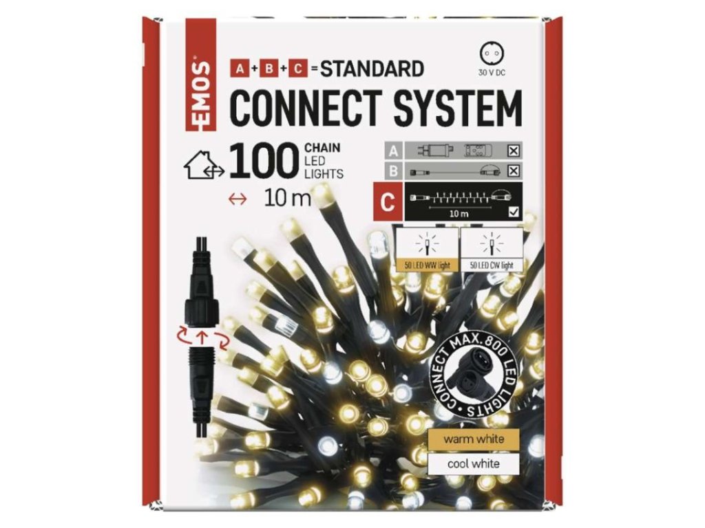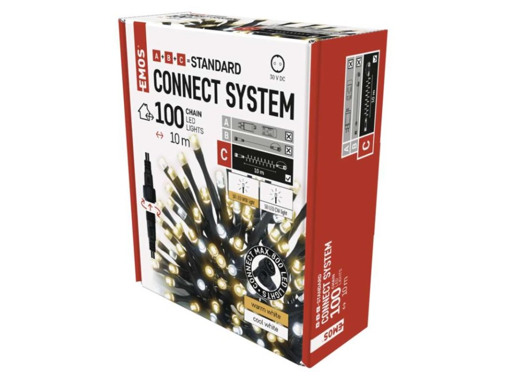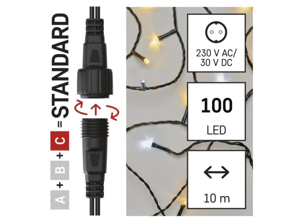 Standard LED spojovací vánoční řetěz, 10 m, venkovní, teplá/studená bílá