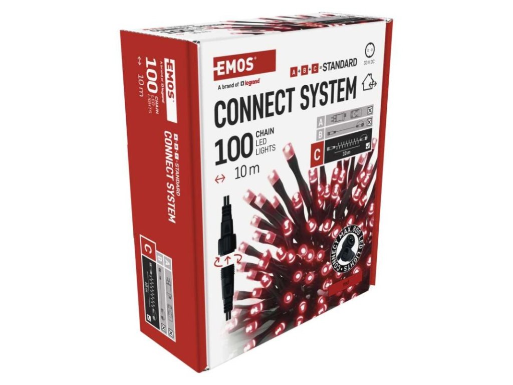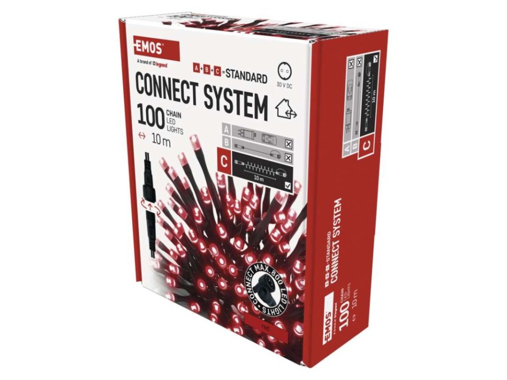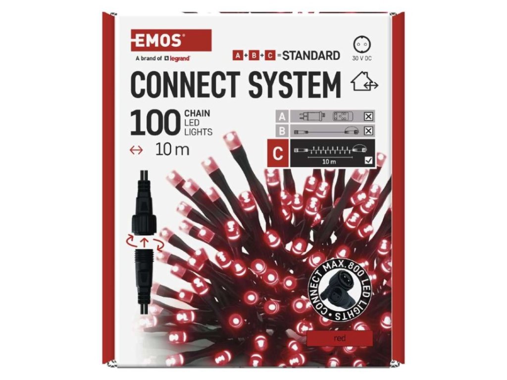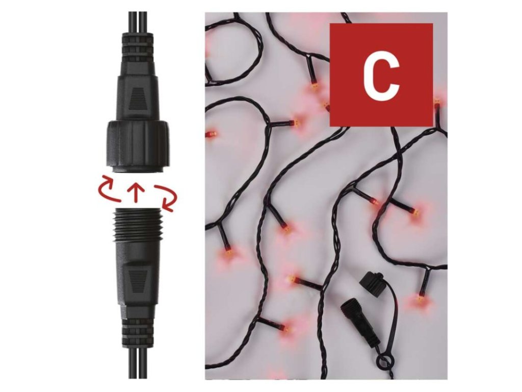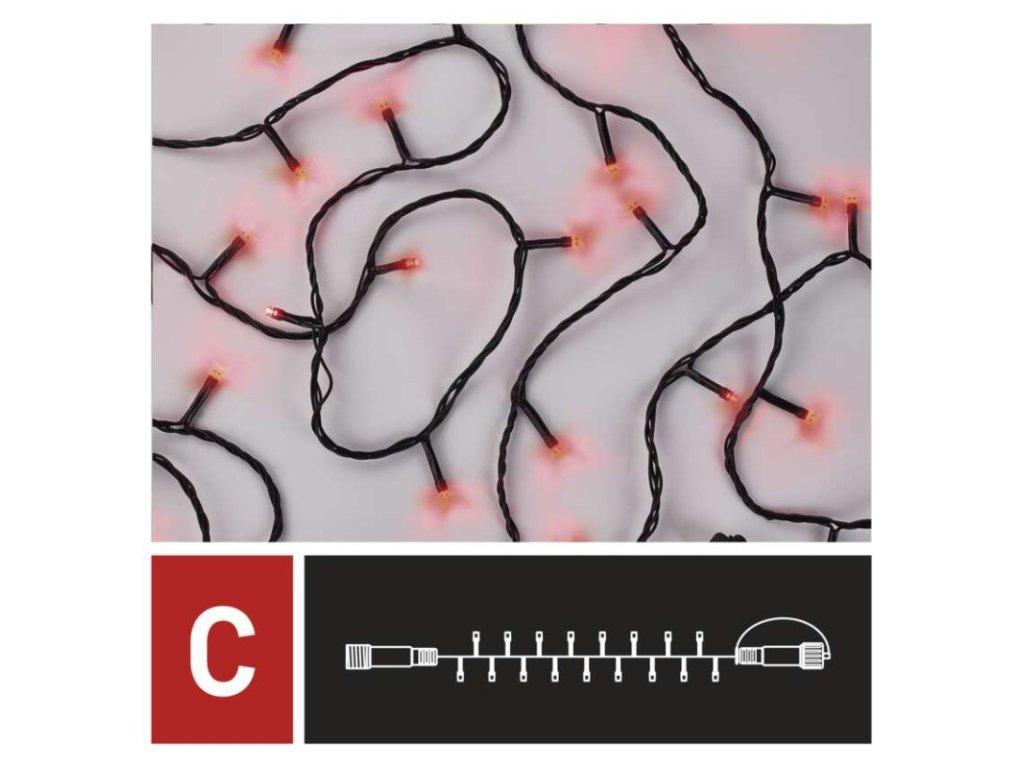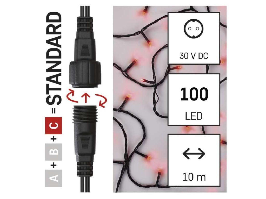 Standard LED spojovací vánoční řetěz, 10 m, venkovní i vnitřní, červená