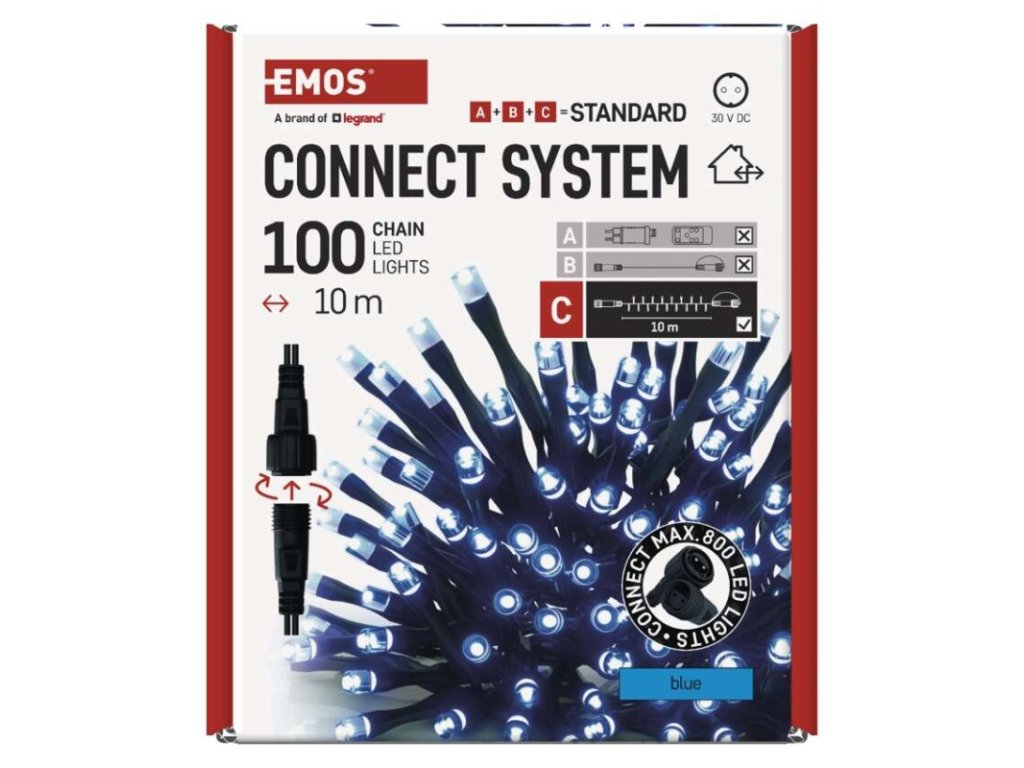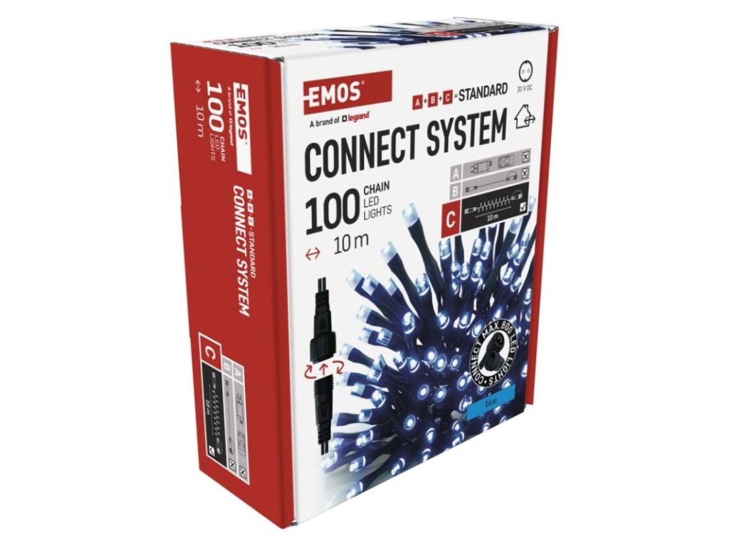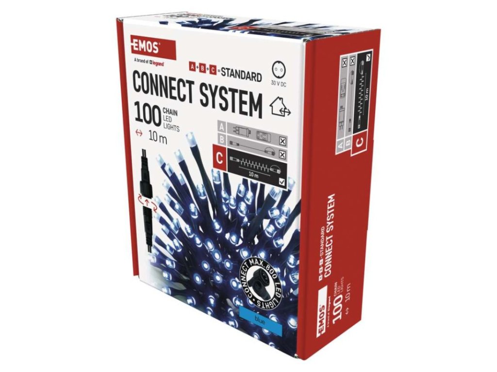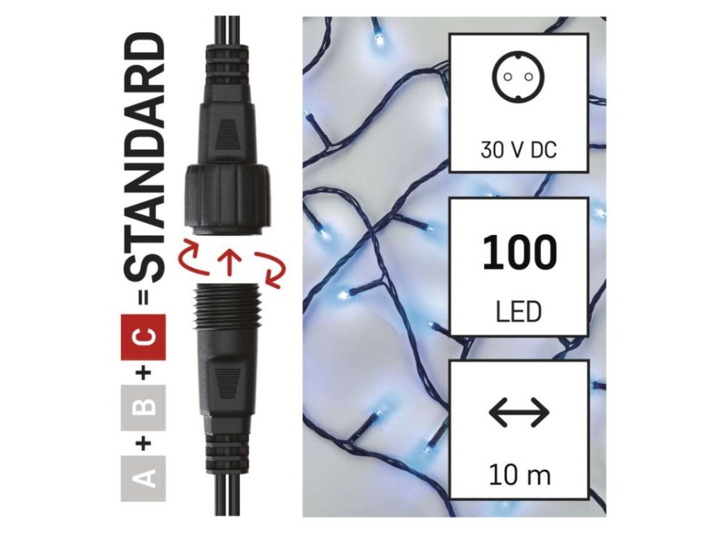 Standard LED spojovací vánoční řetěz, 10 m, venkovní i vnitřní, modrá