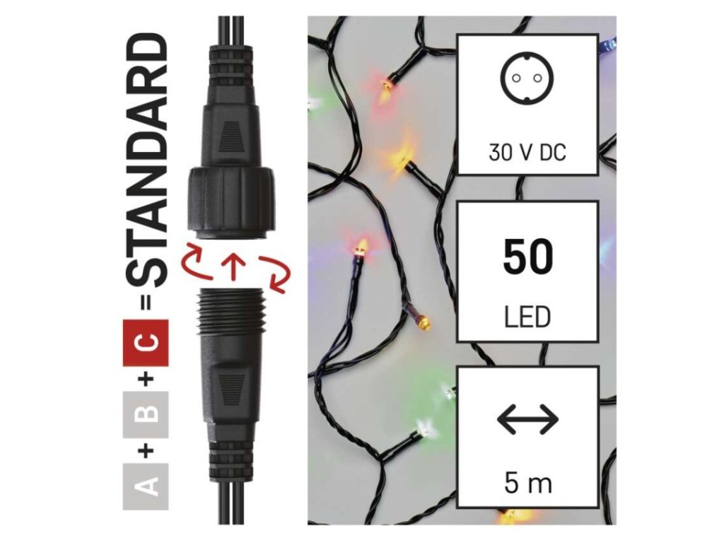 Standard LED spojovací vánoční řetěz, 5 m, venkovní i vnitřní, multicolor