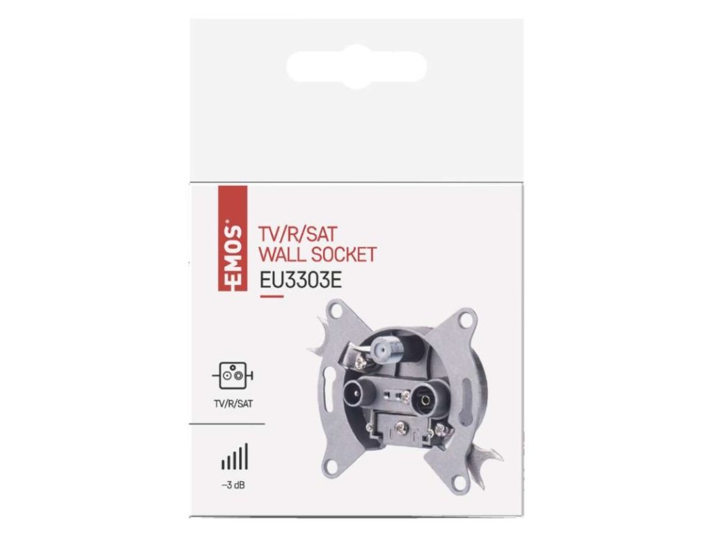 koncový útlum: 3 dB|kryt součástí: ne|označení: TV (2) + R (2) + SAT (3)|prodejní obal: 1 ks, krabice|provedení: koncová|průchozí útlum: neuvádí se|rozměr: 26 × 60 × 60 mm|typ konektorů: IEC + F (female)