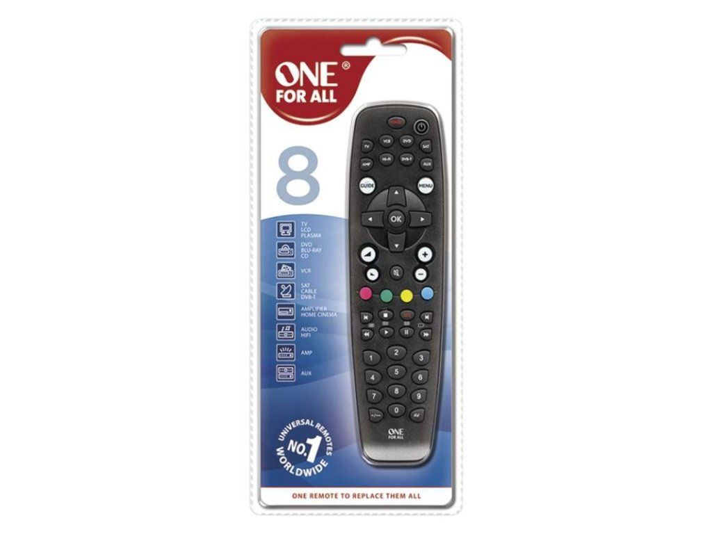 baterie součástí ovladače: ne|dosah: 15 m|funkce combi control: ne|funkce makro: ne|funkce učení: ne|garance podpory ovládání všech značek: ano|hmotnost: 80 g|modelová řada: Basic|napájení: 2× AAA|nastavení a aktualizace přes www.simpleset.com: neuvádí se|paměť kódů po vyjmutí baterií: ano|počet možných ovládaných zařízení: 8|podsvícení kláves: ne|předprogramované kódy: ne|přímá volba zařízení: ano|přímé nastavení kódu: ano|prodejní obal: 1 ks, papírová krabička|rozměr: 24 × 50 × 182 mm|rychlý přístup k oblíbené aplikaci: ne|servisní aktualizace: ano|simple set nastavení: ne|určeno pro: TV, DVB-T, SAT, KAB TV, IPTV, DVD, Blu-ray, Video, Zesilovač, Tuner, Domácí kino, CD, iPod Dock|vyhledání kódu: manuální|zámek hlasitosti: ano|změna nastavení ovládacího tlačítka zařízení: ne