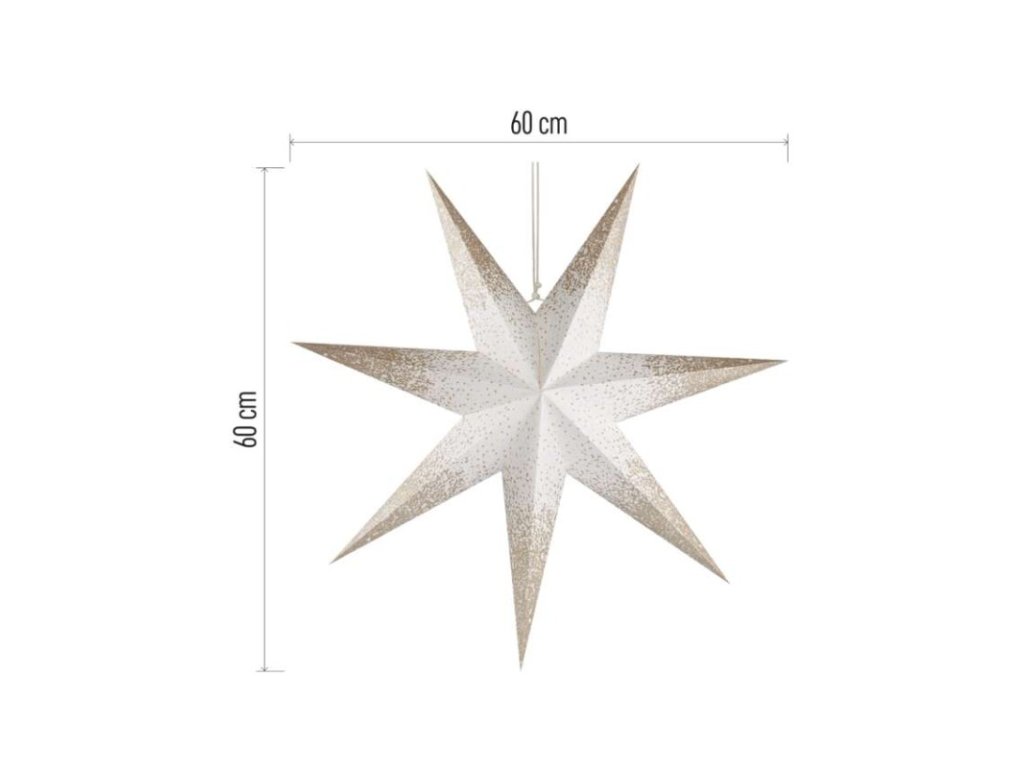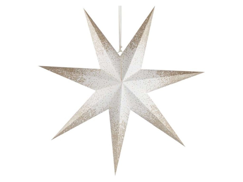 Vánoční hvězda papírová závěsná se zlatými třpytkami na okrajích, bílá, 60 cm, vnitřní
