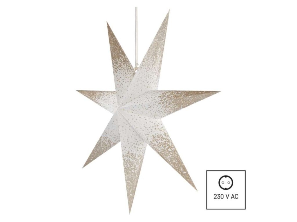 barva drátu: bílá|barva světla: neuvádí se|časovač: ne|dálkový ovladač: ne|délka přívodu: 3,2 m|krytí: IP20|materiál: papír|počet LED: neuvádí se|použití: vnitřní|příkon: 25 W max.|prodejní obal: 1 ks, krabice|produkt: hvězda|rozměr: 60 cm|typ napájení: síť|vstupní napětí: 230 V AC|výstupní napětí: neuvádí se|záruční doba: 2 roky|zdroj svícení: E14|životnost: 10 000 hodin