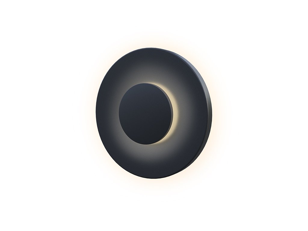 Zahradní nástěnné LED svítidlo s kruhovým designem, které svými paprsky vytváří příjemnou světelnou mlhu ve tvaru kruhu v jeho okolí.