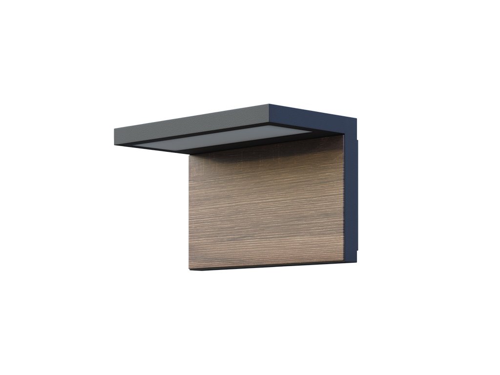 Zahradní nástěnné LED svítidlo s hranatým designem s prvky v imitaci dřeva.