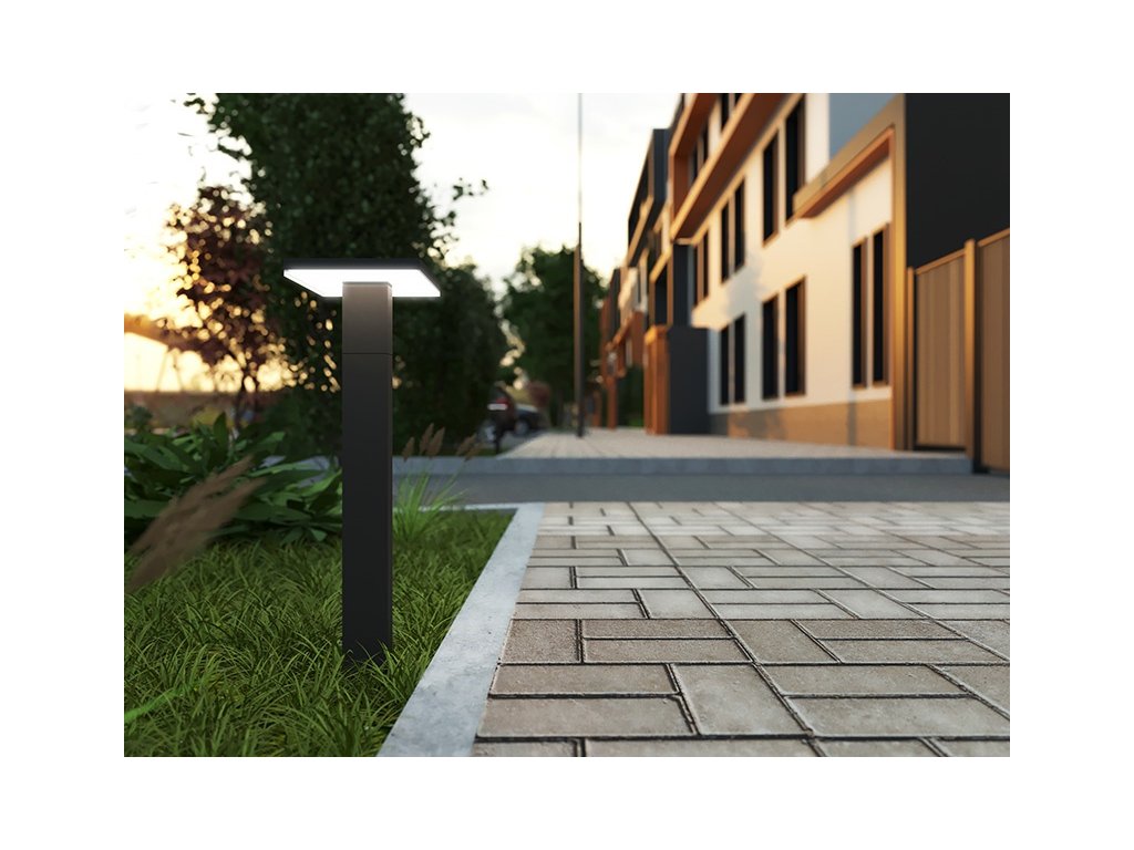 Zahradní sloupkové LED svítidlo s hranatým designem a pohybovým PIR senzorem.