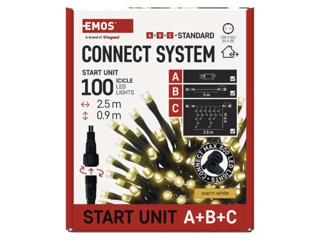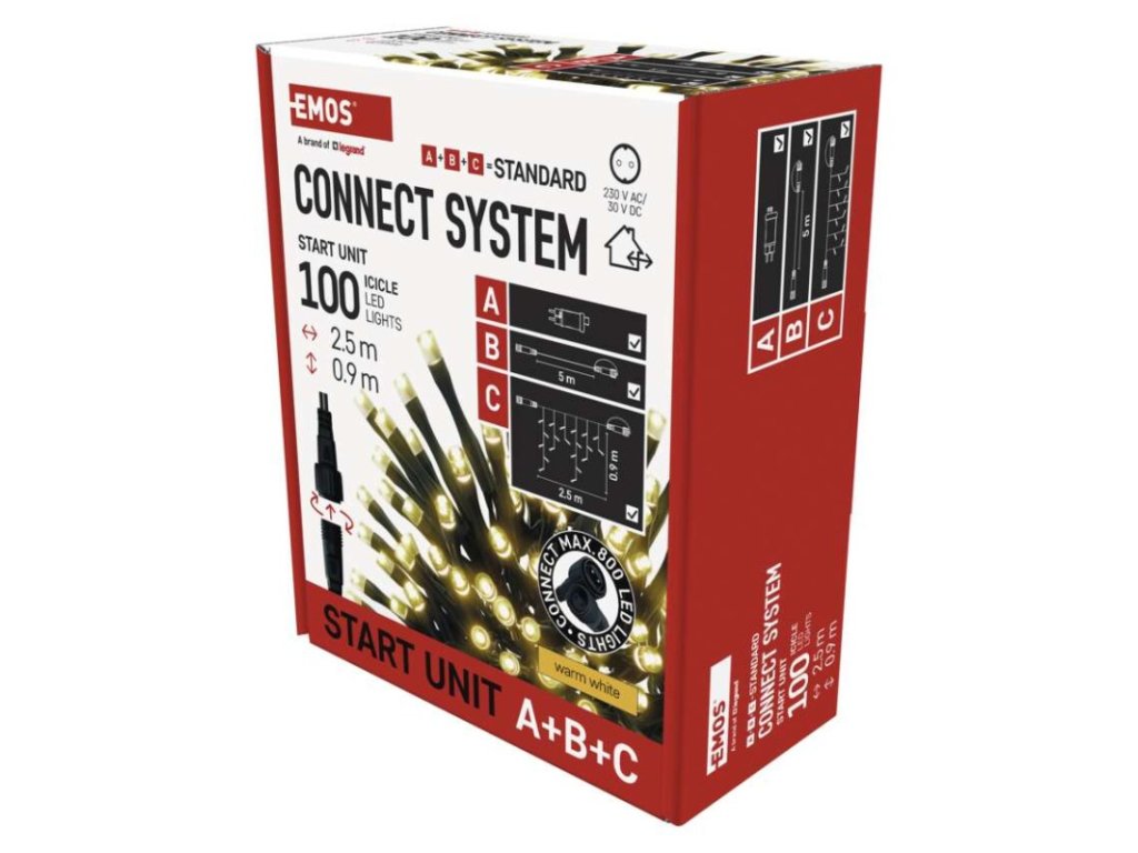 Základní sada pro spoj. řetězy Standard – rampouchy, 2,5 m, venkovní, teplá bílá, časovač