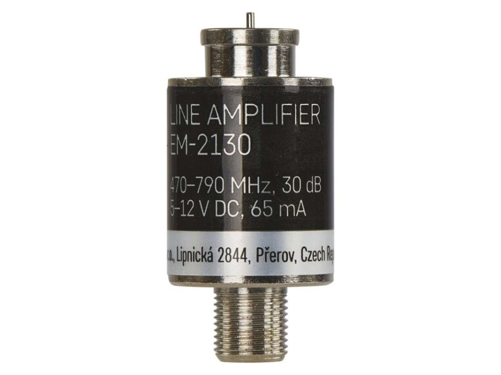 5G filtr: ne|frekvenční rozsah: 470–790 MHz|izolace mezi vstupy: neuvádí se|konektory: F konektor|krytí: IP45|LTE filtr: ano|maximální úroveň signálu na výstupu: 104 dBµV|napájení: 5–12 V DC, 65 mA|počet vstupů: 1|počet výstupů: 1|potlačené pásmo: 790–2 200 MHz|prodejní obal: 1 ks, headercard|produkt: stíněný linkový zesilovač|průchozí pro stejnosměrné napájení předzesilovačů: ne|regulace zisku: neuvádí se|rozměr: 20 × 42 mm|rozteč děr: neuvádí se|šumové číslo: <2,0 dB|útlum v potlačeném pásmu: neuvádí se|vstupy: F konektor|zesílení: 30 dB