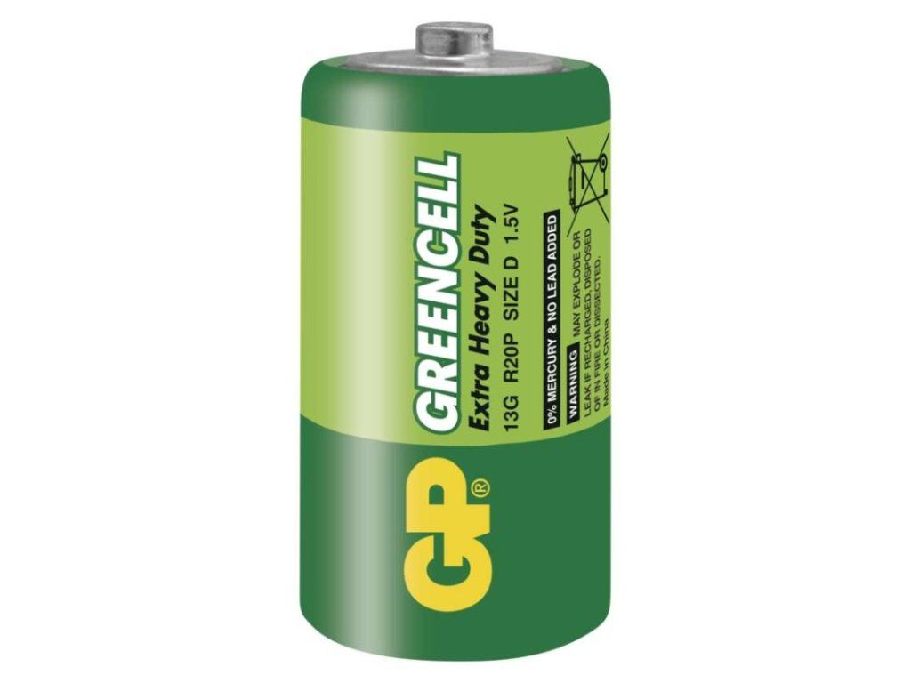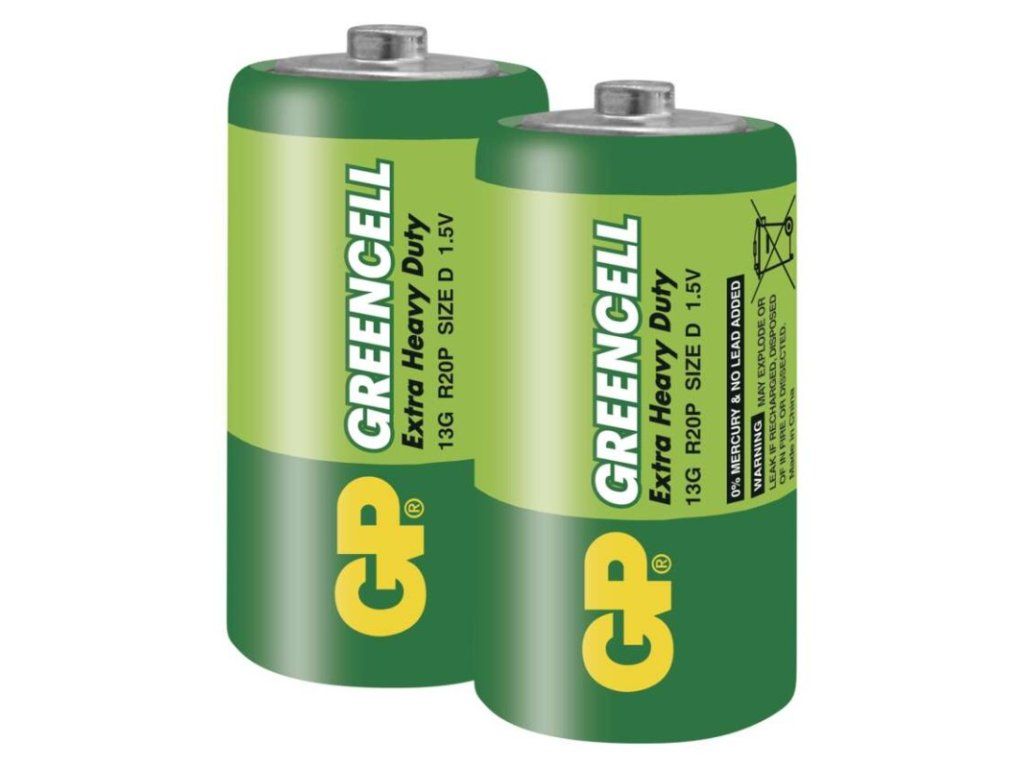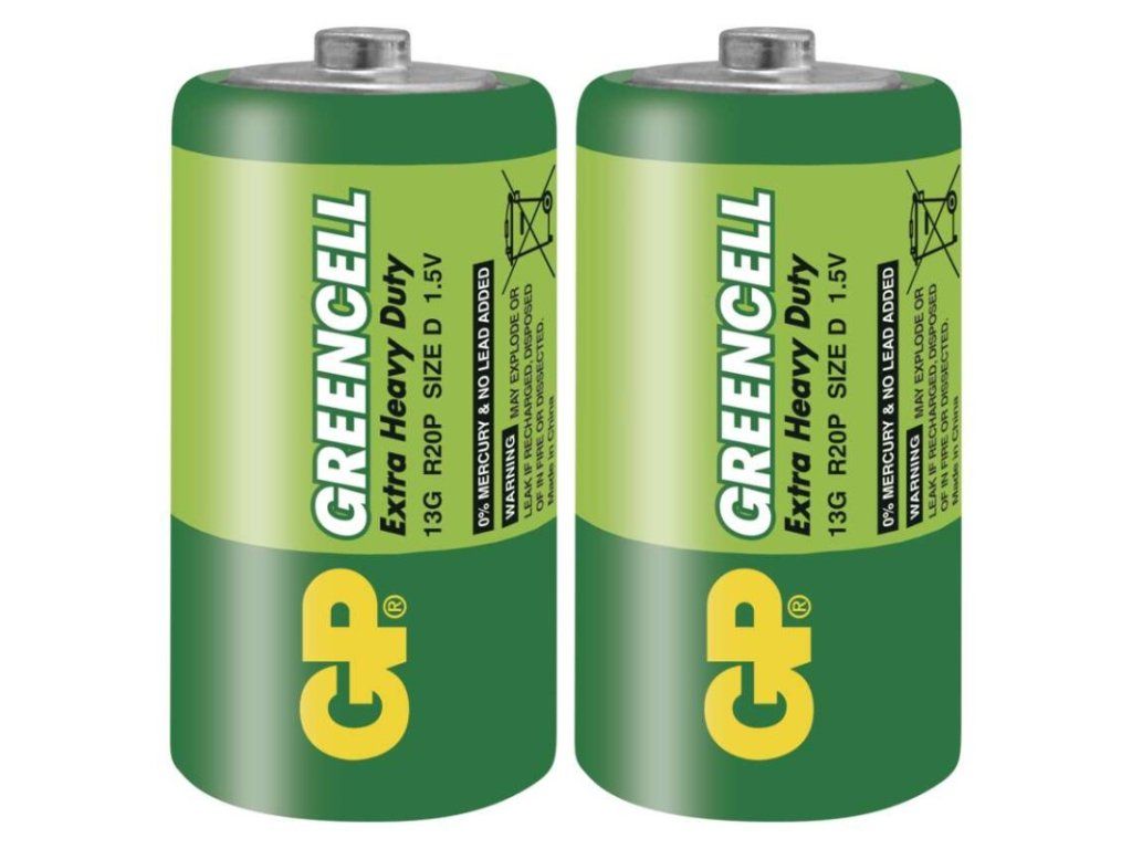 chemické složení: zink-chloridové|hmotnost: 97 g|kapacita: neuvádí se|kategorie/řada: Greencell|max. skladovatelnost: 3 roky|možnost nabíjení: ne|napětí: 1,5 V|počet nabíjecích cyklů: nenabíjecí|prodejní obal: 2 ks, blistr|provozní teplota: 0 °C až +45 °C|rozměr: 34,2 × 61,5 mm|typ: R20 (velké mono, D)|velikost baterie: D|značka: GP